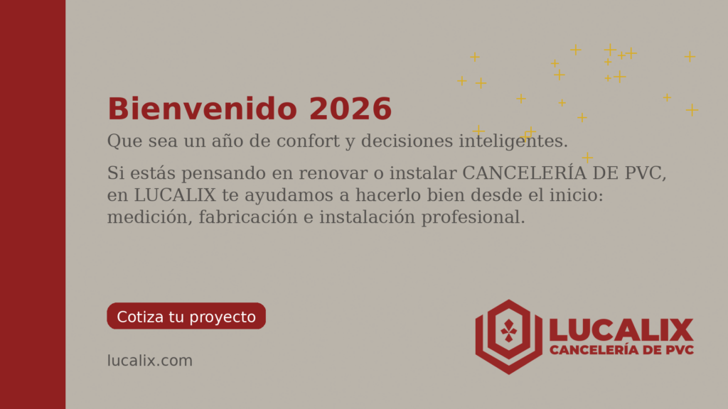 En LUCALIX, queremos desearte un 2026 lleno de salud, estabilidad y proyectos que sí se cumplan. Y si uno de esos proyectos es tu casa (o tu obra), hay una mejora que se nota todos los días: instalar o renovar cancelería de PVC.